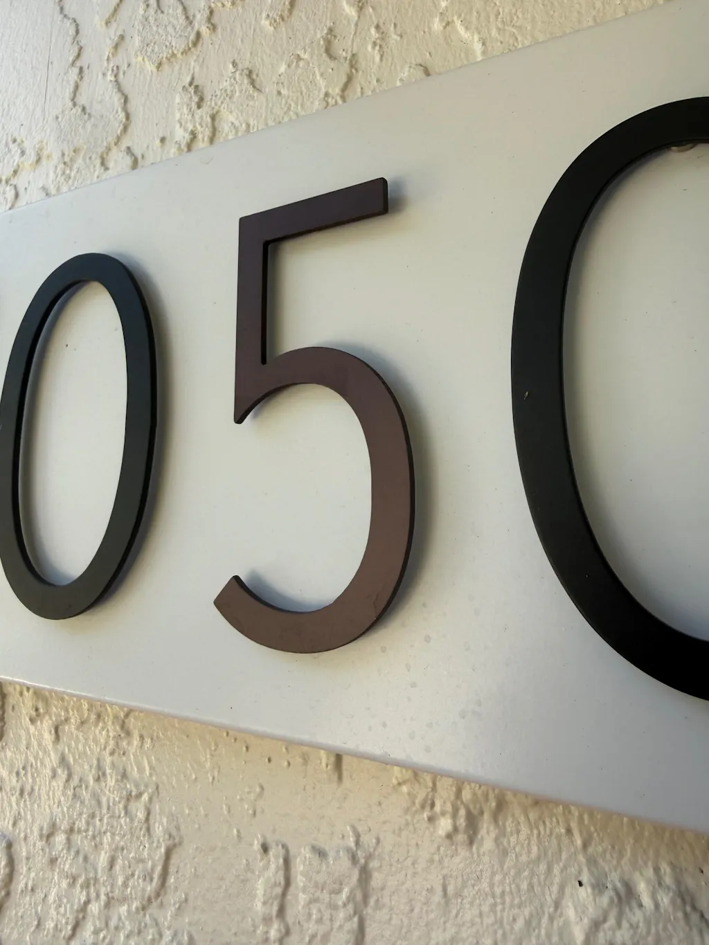The aluminum numbers attach to the plaque with 1/8" thick MAGNETS, giving them a subtle shadow effect. You can play with the location and spacing of the numbers to get the perfect look for your home!