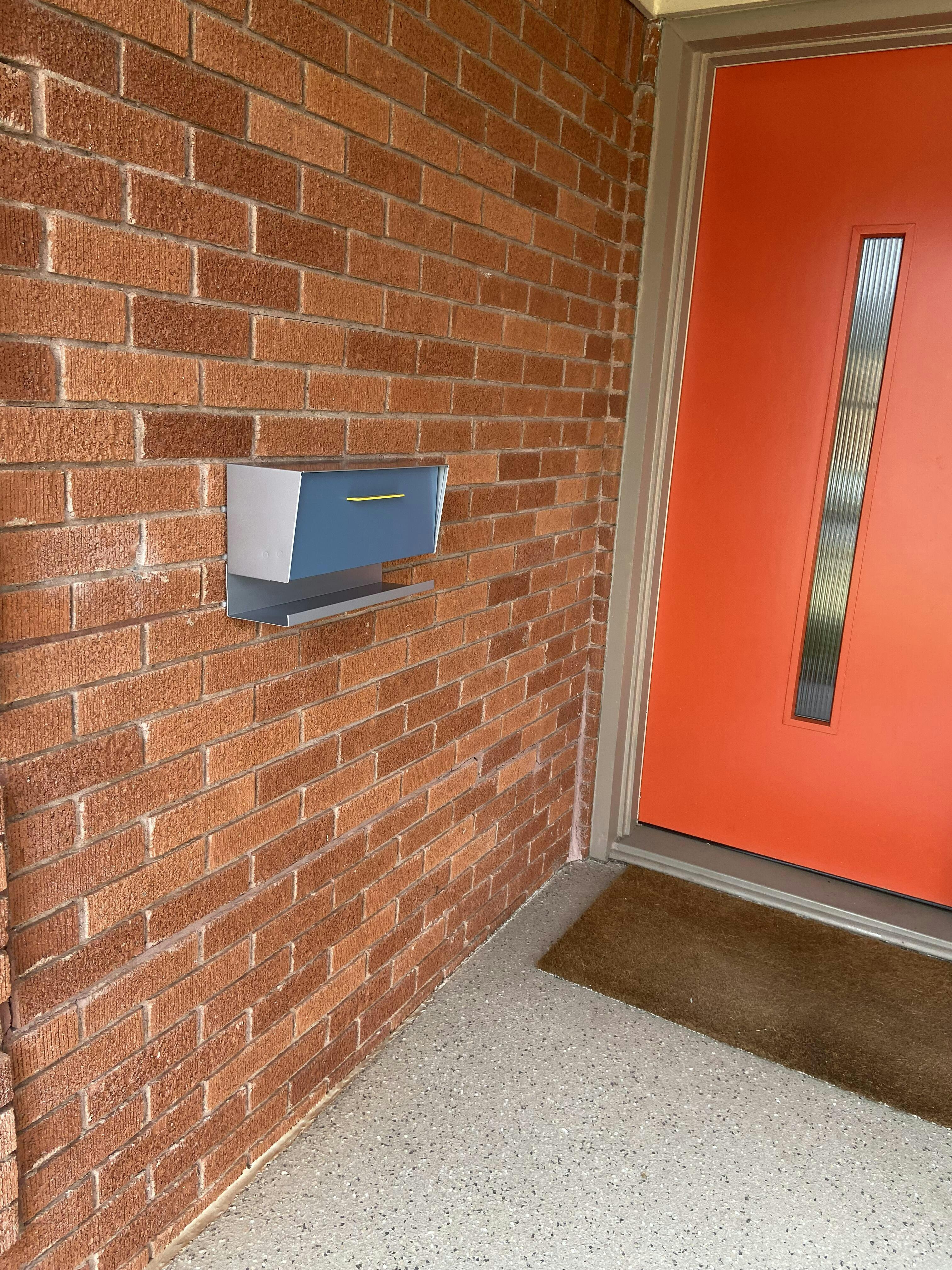 This mid-century modern wall mounted mailbox design with an angled housing reflects the lines and colors of our original Modbox mailbox. The dimensions are reminiscent of mailboxes produced in the 50s and 60s when the ranch-style house, with a long low profile, was popular with the booming post-war middle class. Crafted in America, the way it used to be.